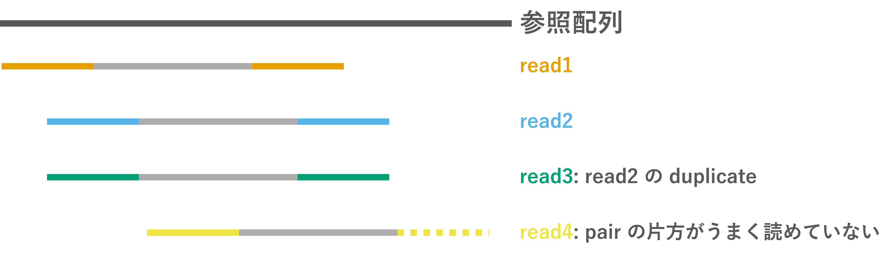 collate, fixmatesamtools collatesamtools fixmate -mMC, ms) というタグを付加する。